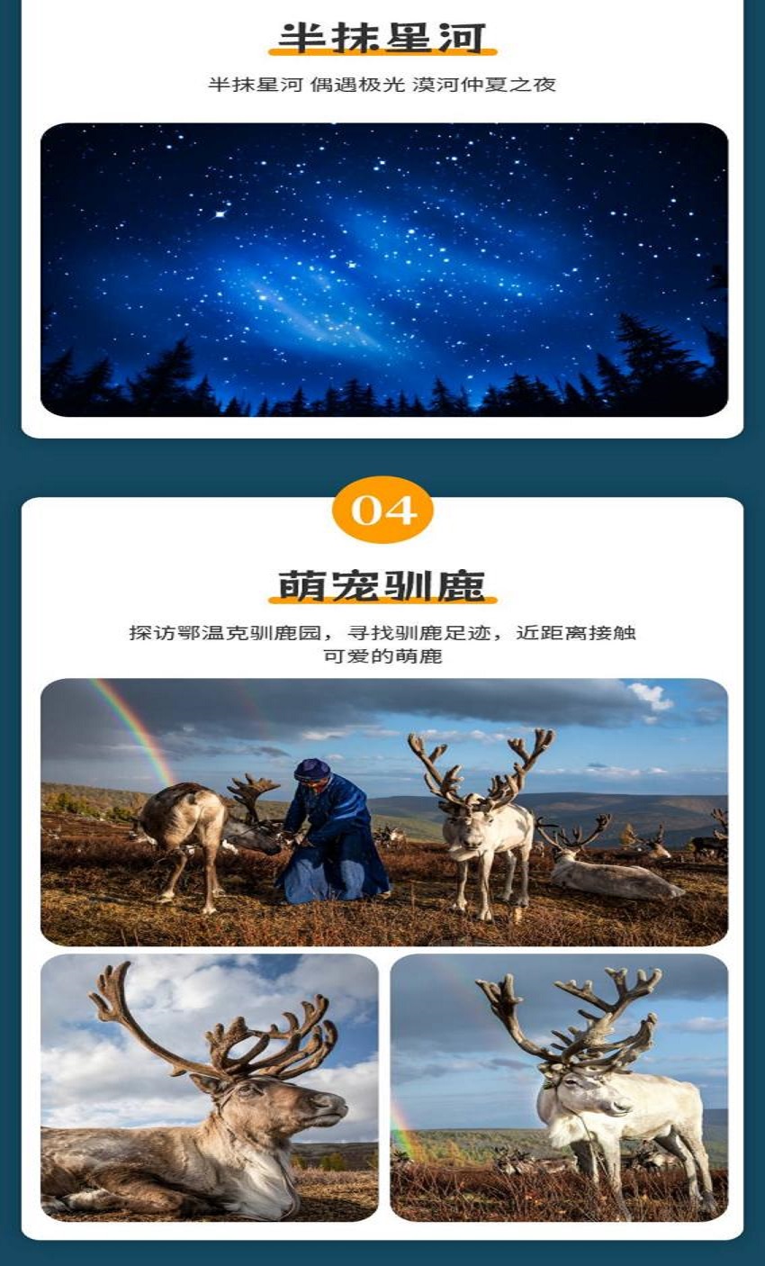 4、門票:九曲十八彎門票、龍江第一灣門票、北極村門票、鄂溫克馴鹿園、漠河舞廳門票;