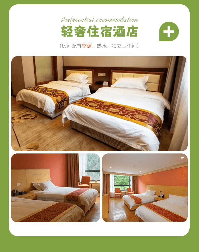 豪華型酒店:東方峰雅、滴水灣、禾潤度假酒店、漫亭酒店、雪絨酒店、云逸錦峰,云天商務酒店、風情大酒店或同級酒店;