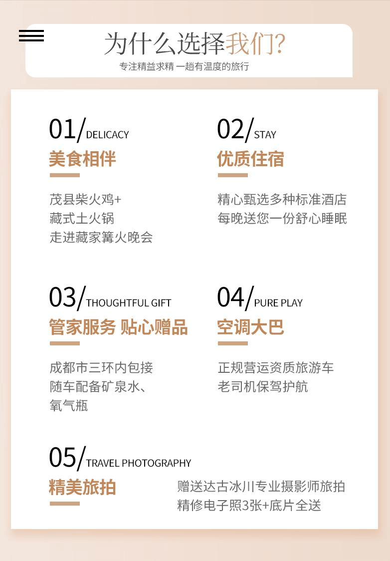 4、此行程內所標注時間僅作為參考時間,具體以旅行社實際安排為準。返回成都后統一在金科北路地鐵站附近散團。