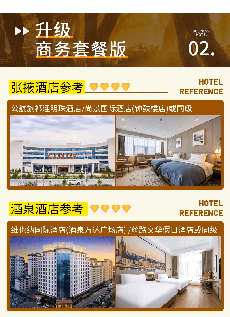 張掖市:3鉆酒店雙標間1晚參考宇辰精品酒店(張掖國家濕地公園店)/艾瑞精品酒店(張掖大佛寺高鐵西站店)/星程酒店(張掖潤泉湖店)/星程酒店(張掖西站店)/甘州賓館或同級