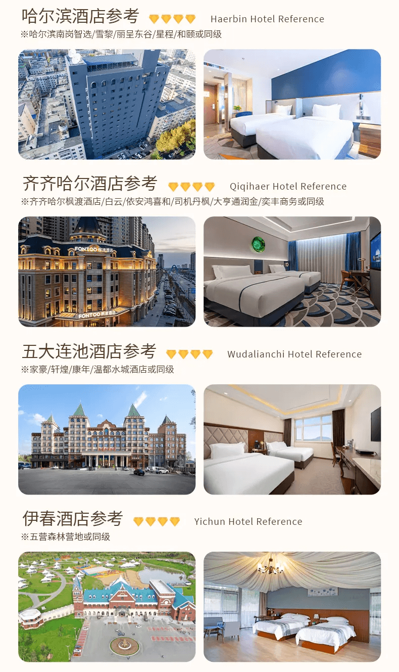 備注:東北經濟較為落后,酒店較南方酒店略差,敬請諒解。