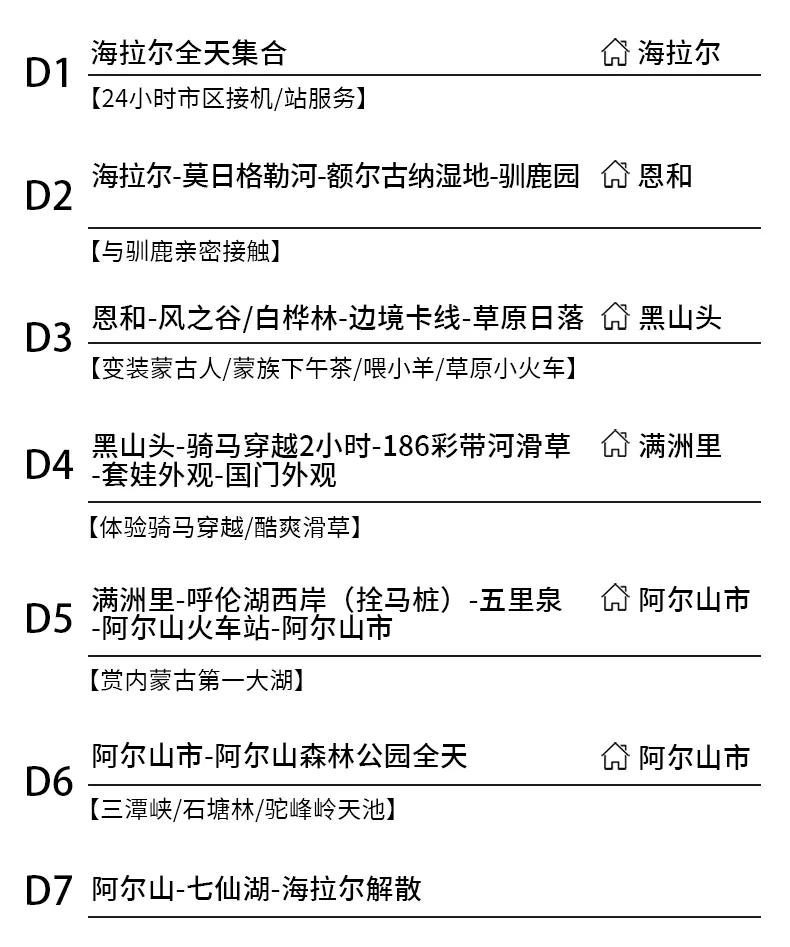1、阿爾山景區較大,根據實際情況可能會有先后順序調換。