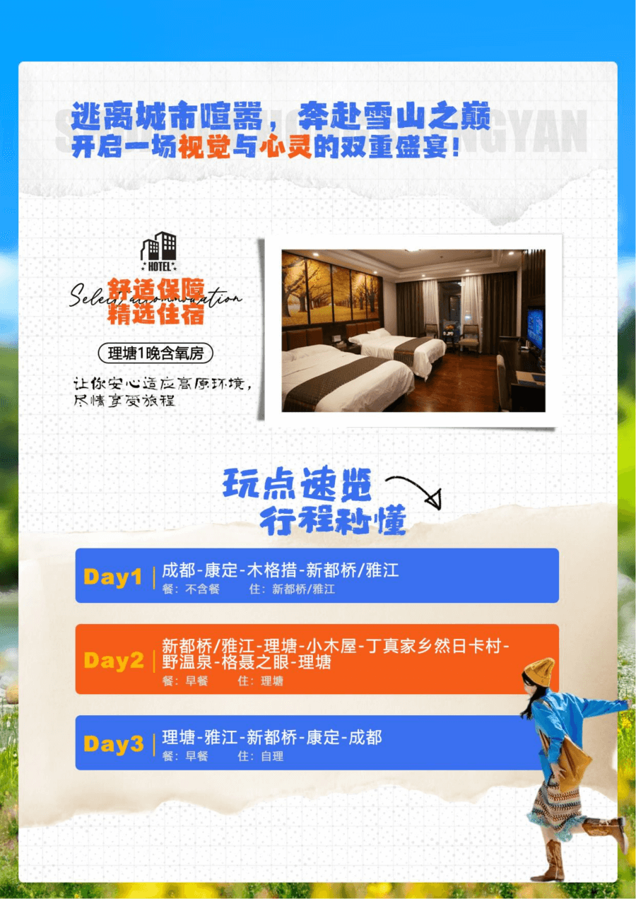 ?晚上:晚餐后入住新都橋/雅江酒店。