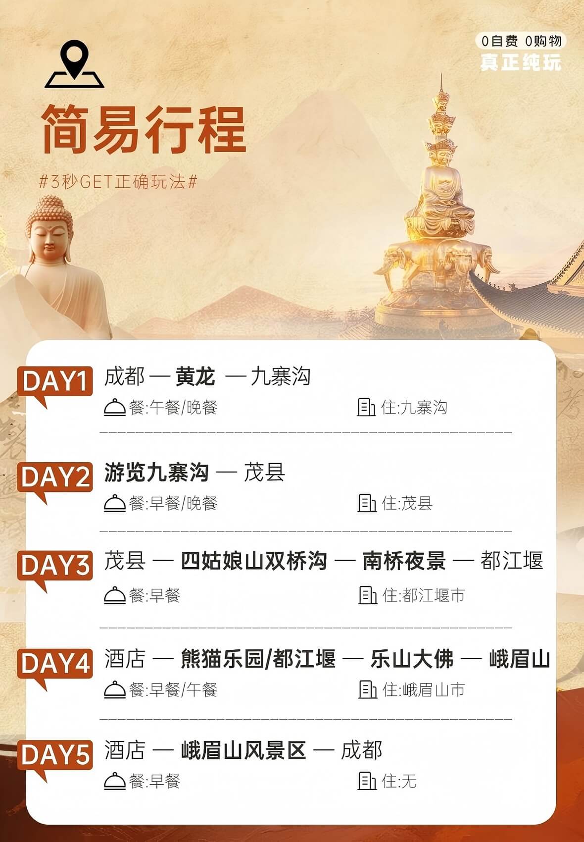 7:環線景點:九寨溝、黃龍、四姑娘山、南橋夜景、熊貓樂園/都江堰、峨眉山、樂山大佛