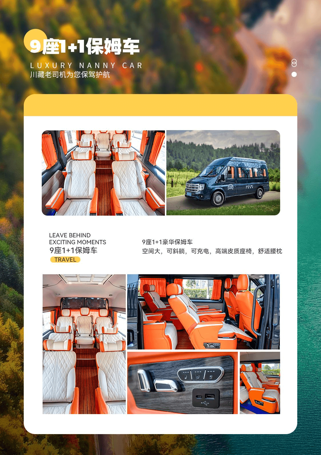 交通:全程正規 9 座旅游保姆車,保證一人一正座