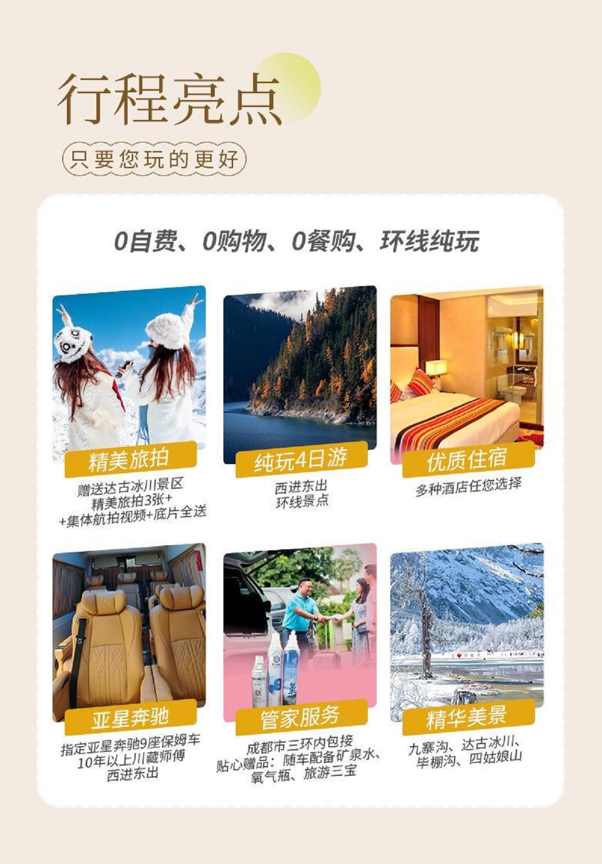 注:此行程免費贈送成都市三環內包接服務,接人師傅會在出團前一天晚?6?點——9?點與您聯系,請保持手機暢通,注意接聽電話,游覽期間注意安全,如有身體不適第一時間告知工作人員。