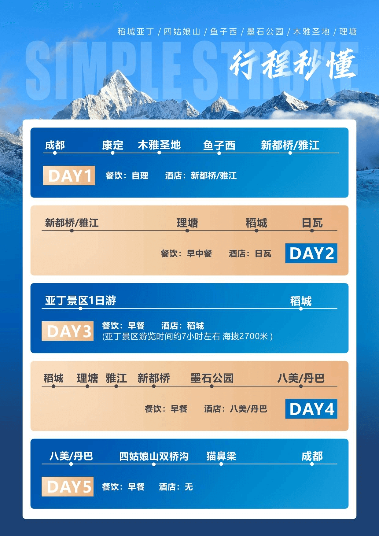 4.因亞丁景區內無法提供用餐,景區內中餐請自理,客人可提前自備干糧。
