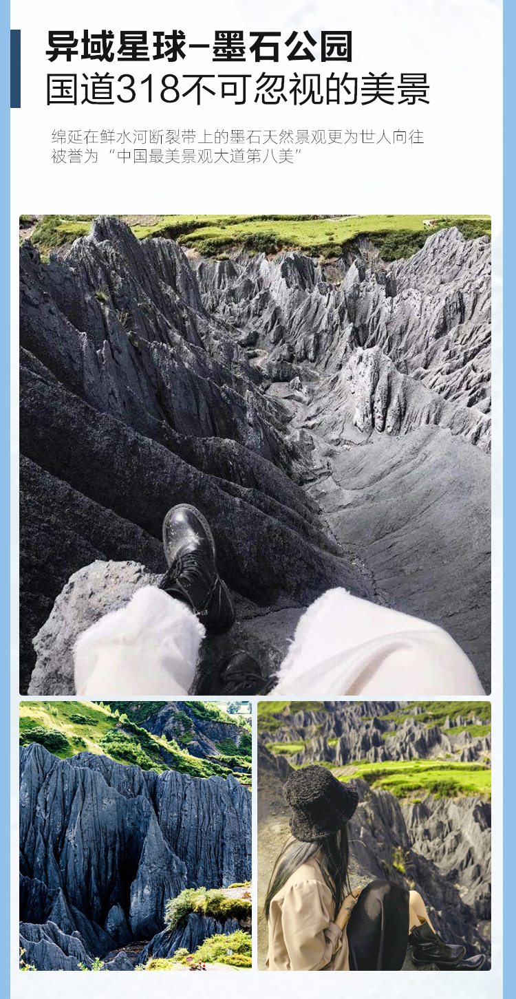 早餐后往中國(guó)的百慕大—八美墨石公園景區(qū)游玩,步入墨石公園,傳說(shuō)當(dāng)年格薩爾王王妃珠姆在此游玩之時(shí),不小心掉下一條絲巾,?落在這片格薩爾王戰(zhàn)斗過(guò)的土地上,變成了卡瑪河,滋潤(rùn)著這片石林及當(dāng)?shù)氐娜藗儭J趾}鹽,受空氣濕度的影響,?干燥季節(jié)呈淺灰色、淺藍(lán)色,濕潤(rùn)季節(jié)呈蒼黑色,又稱之為變色石林。之后返回【塔公草原】,藏語(yǔ)意為“菩薩喜歡的地方”,塔公草原因塔公寺而得名。塔公寺是藏傳佛教薩迦派著名寺廟之一,有“小大昭寺”之稱,是康巴地區(qū)藏民朝拜的圣地之據(jù)傳說(shuō)公元?641?年文成公主進(jìn)藏與松贊干布完婚時(shí)途經(jīng)木雅人居住的這片草地?。隨后乘車返回成都,結(jié)束愉快的行程! 溫馨提示: 1、因山路容易堵車造成延時(shí)回成都,敬請(qǐng)客人不要訂當(dāng)天返程火車票、機(jī)票等交通票,以免造成不必要的損失。 2、自費(fèi)項(xiàng)目:塔公寺?20?元/人、墨石景區(qū)觀光車?20?元/人 3、墨石為贈(zèng)送景點(diǎn)如因天氣、堵車、交通管制等特殊原因不能前往,或游客自愿放棄等主觀原因,造成贈(zèng)送項(xiàng)目沒(méi)有參加的,不等價(jià)退換,贈(zèng)送門票不在享受景區(qū)門票二次優(yōu)惠 ☆☆☆以上行程在不減少景點(diǎn)的情況下,旅行社有權(quán)調(diào)整景點(diǎn)游覽順序☆☆☆