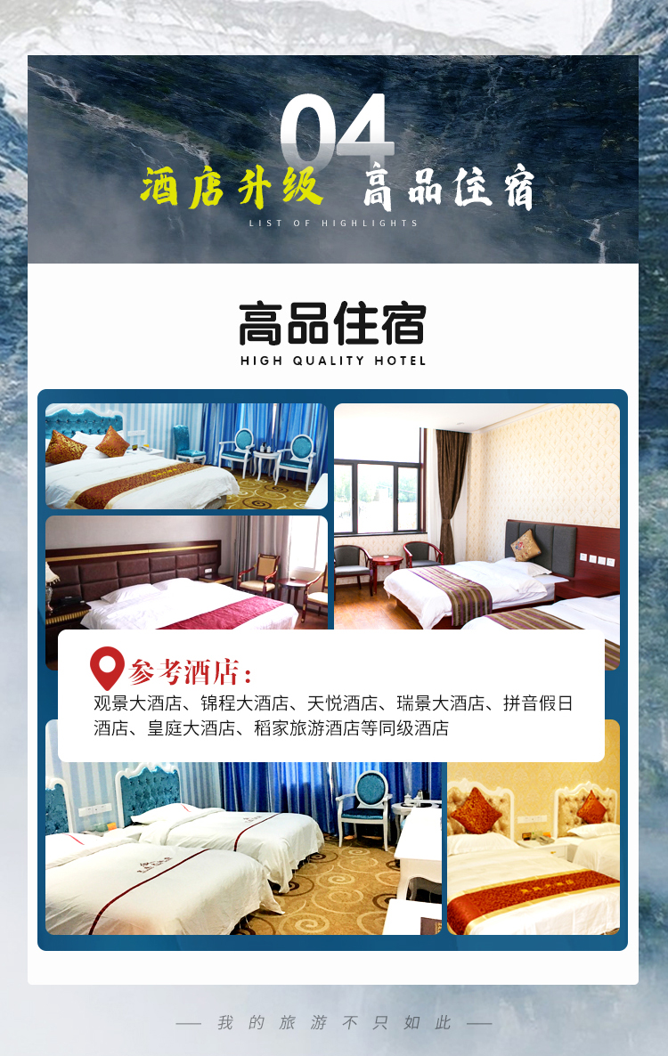5、行程中所列酒店是根據(jù)當(dāng)?shù)氐穆糜螌?shí)際接待條件而做出的相應(yīng)星級(jí)評(píng)價(jià),不代表官方依據(jù)。除游客特別要求掛星以外,均為預(yù)備星級(jí)(即準(zhǔn)星級(jí))。