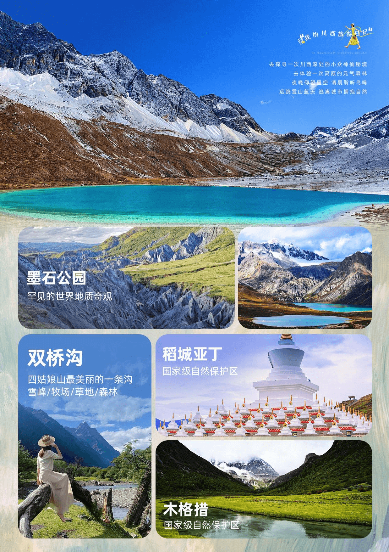 【精致體驗】2-8 人 mini 小團,半自由行,人少景美少等待,拒絕大團繁雜,隨走隨停,隨心暢玩!【環線體驗】317 進 318 出環線不走回頭路,最美景觀大道,打卡絕美川西秘境;沿途風景秒殺朋友圈 ;【行攝川西】稻城亞丁/四姑娘山雙橋溝/墨石公園/魚子西或八朗生都/木格措/環線游