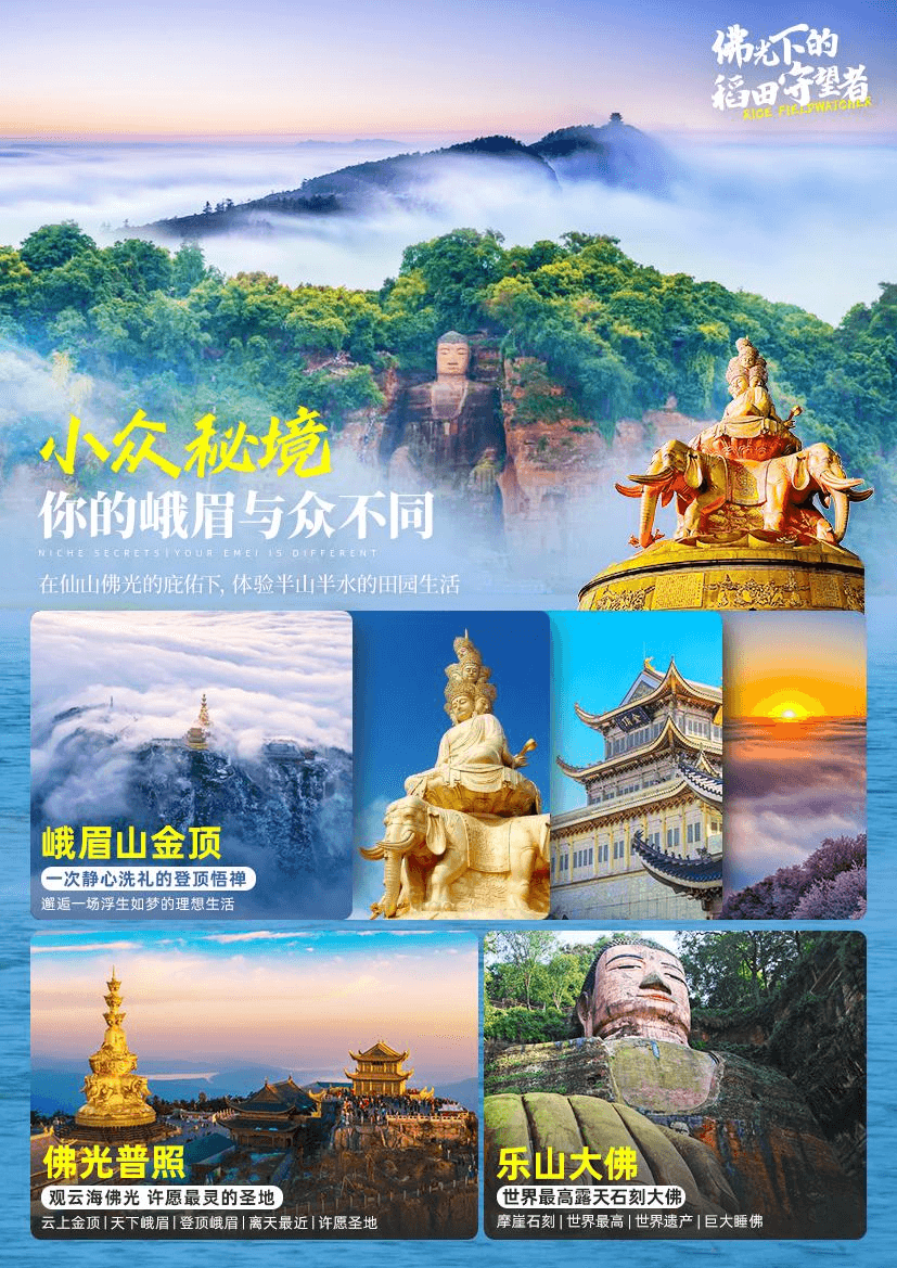 佛光云海,云上金頂,石刻大佛,鄉野田園,花園秘境,彩林溯溪,