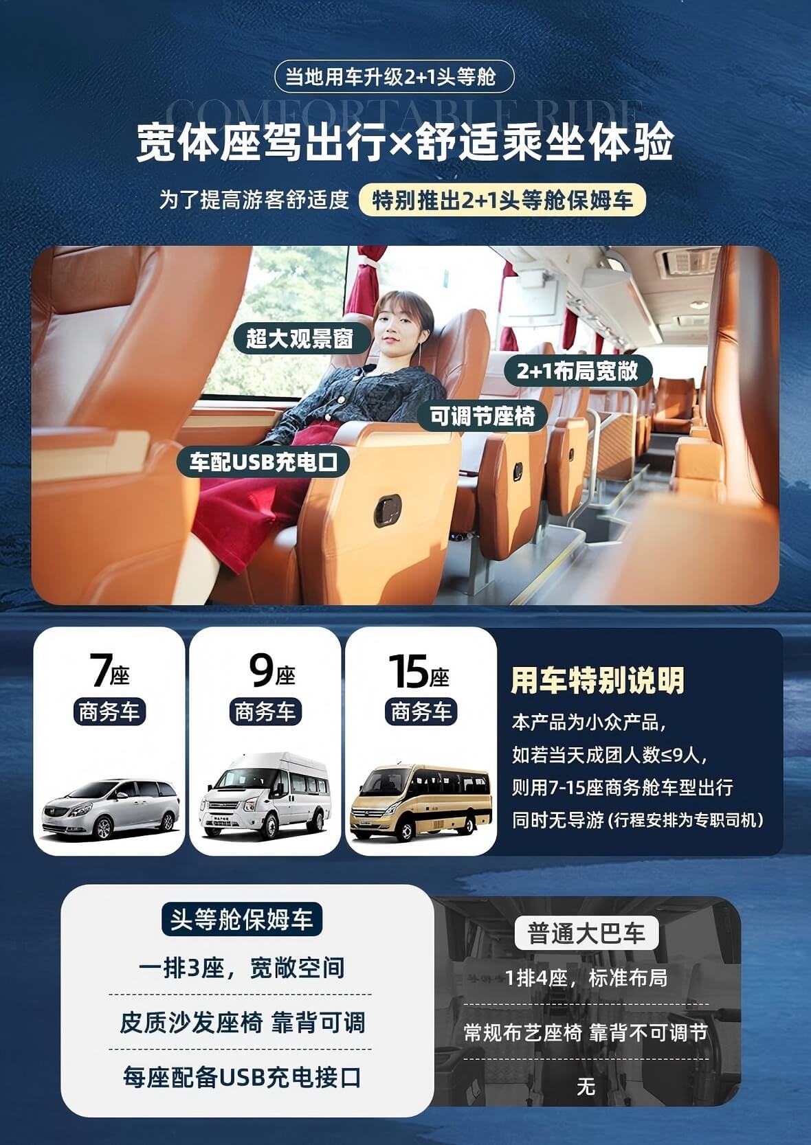2、【用車】黃龍九寨站高鐵站至九寨溝、黃龍往返正規空調旅游車,1人1正座,不提供座次要求 根據最終報名人數選用相應大小的旅游車,散客拼團全程可能非同一臺車;