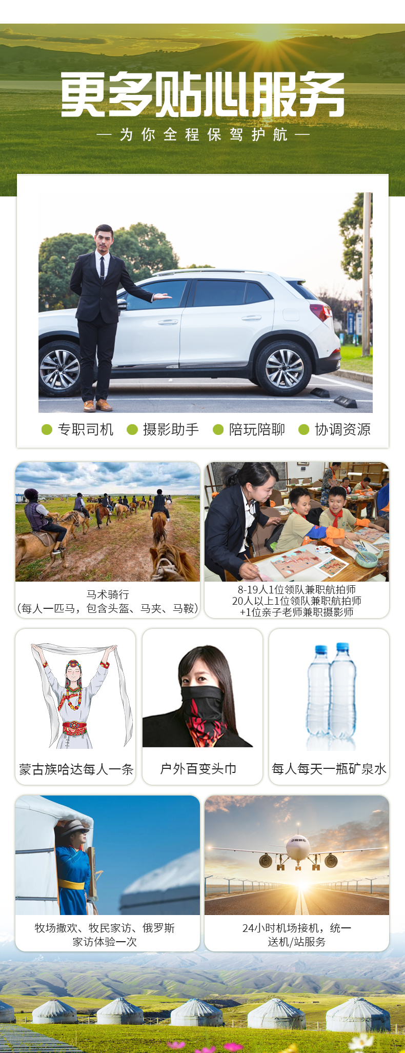 和接機(jī)/站司機(jī)一般是不同的人和車(chē);司機(jī)兼職向?qū)⒃趫F(tuán)期日20點(diǎn)前聯(lián)系您,請(qǐng)您保持報(bào)名時(shí)預(yù)留號(hào)碼通訊暢通。行程內(nèi)提供駕駛和基礎(chǔ)向?qū)Х?wù),非專(zhuān)業(yè)導(dǎo)游水準(zhǔn),無(wú)導(dǎo)游,不進(jìn)景區(qū),也無(wú)額外消費(fèi);司機(jī)職責(zé)主要是駕駛車(chē)輛,保證游客安全,故精力有限,請(qǐng)大家保持合理期待。