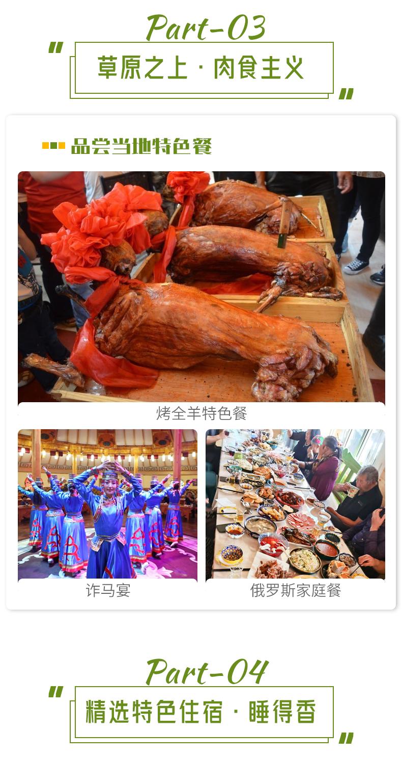 2、用餐:全程包含5頓早餐(不占床不含早餐)、4頓正餐+3頓特色餐:D3中餐、D4中餐、D5中餐、D6中餐、詐馬宴特色餐(D2中餐),烤全羊特色餐(D3晚餐),俄羅斯家庭餐(D5晚餐),其他正餐不含;