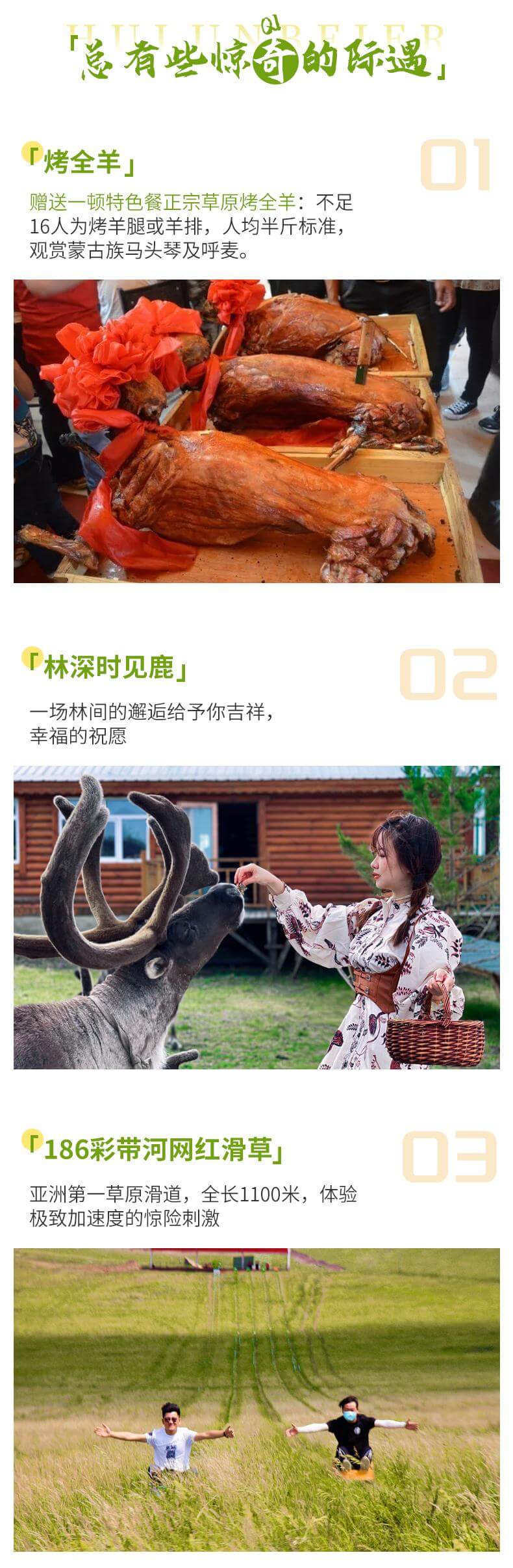 小眾玩法:俄羅斯族列巴蘸鹽儀式、尋跡鹿蹤、逐草夕陽下、馬之舞、牧民之家、網(wǎng)紅滑草、草原小火車、白樺林、阿爾山火車站;