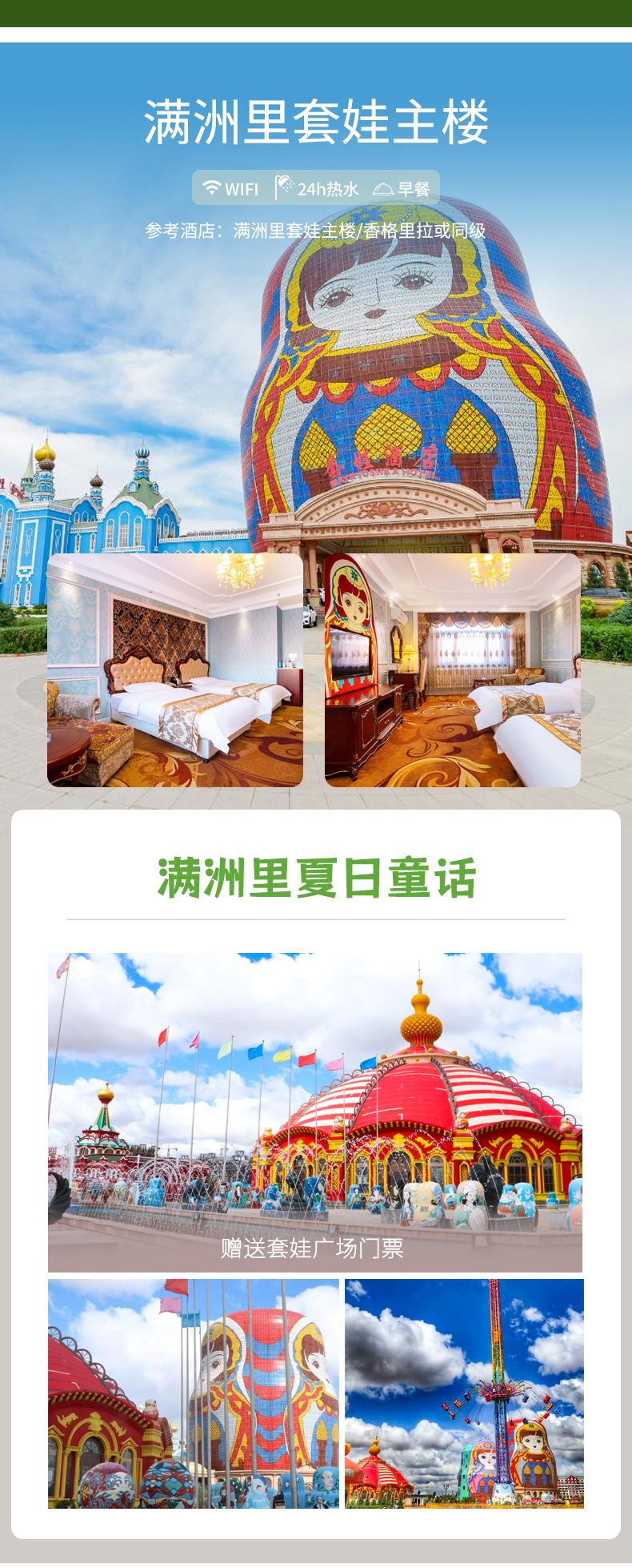 14:30 ?抵達創造了世界吉尼斯記錄的【套娃廣場】觀看世界最大套娃。我們將贈送您套娃廣場套票,包含室內外高科技游樂場、十余項大型動感游樂設施、球幕飛翔影院奇幻之旅等體驗!還可以在這里觀看大型室外俄蒙演藝噴泉表演、俄羅斯表演藝人盛裝巡游!(表演為7-8月開始,如因景區原因或下雨等惡劣天氣取消不退費用)。