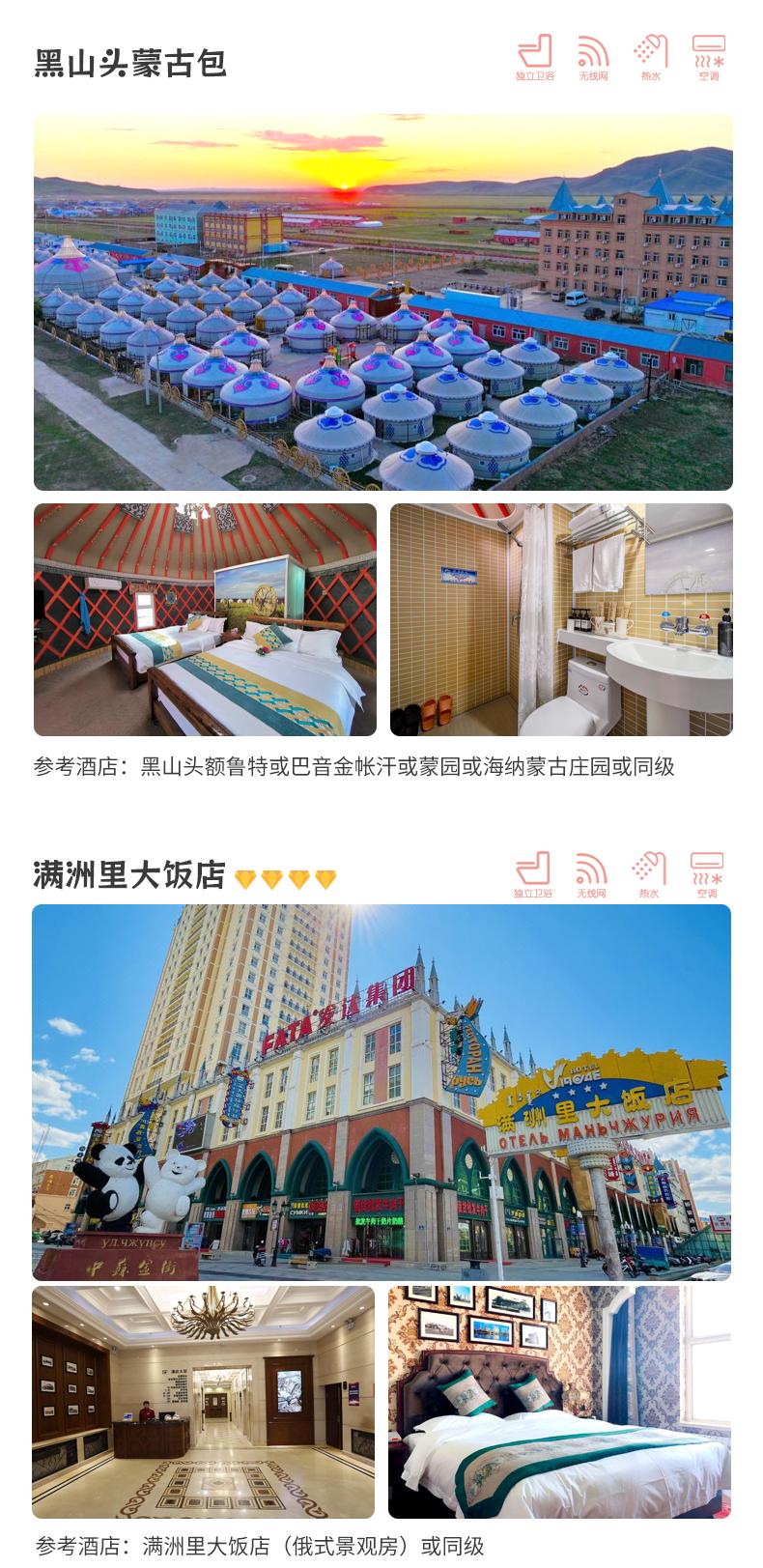 嚴選住宿:海拉爾四鉆或同級,恩和木刻楞或同級,黑山頭蒙古包或同級,滿洲里四鉆酒店或同級,露營地或海拉爾四鉆或同級;