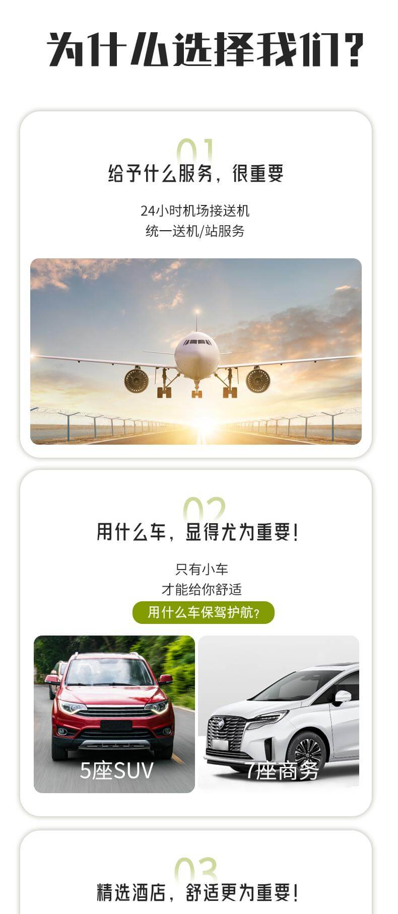 舒適旅程:全程SUV,老司機開路,保障旅途舒適舒心。
