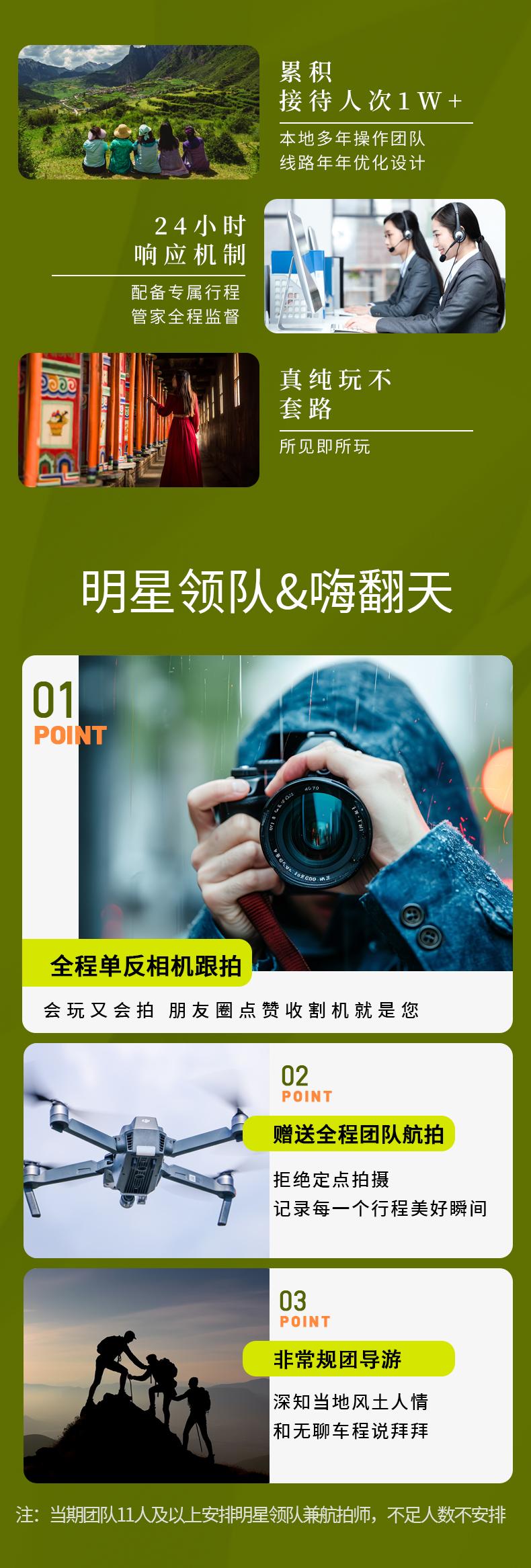 5.領隊:當期滿11人安排1名領隊全程航拍+單反攝影,不足人數為司機兼管家無航拍(出行前兩天發出行短信)