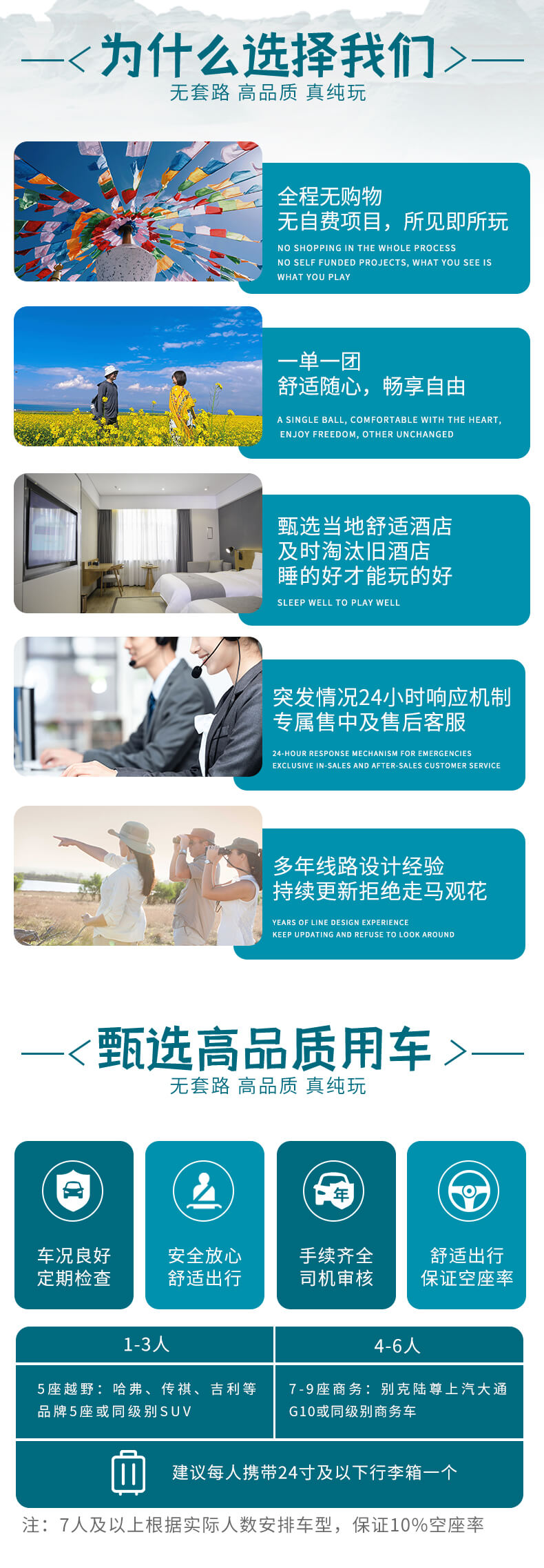 舒適旅程:2-6人小團,10%及以上空座率,保障旅途舒適舒心;