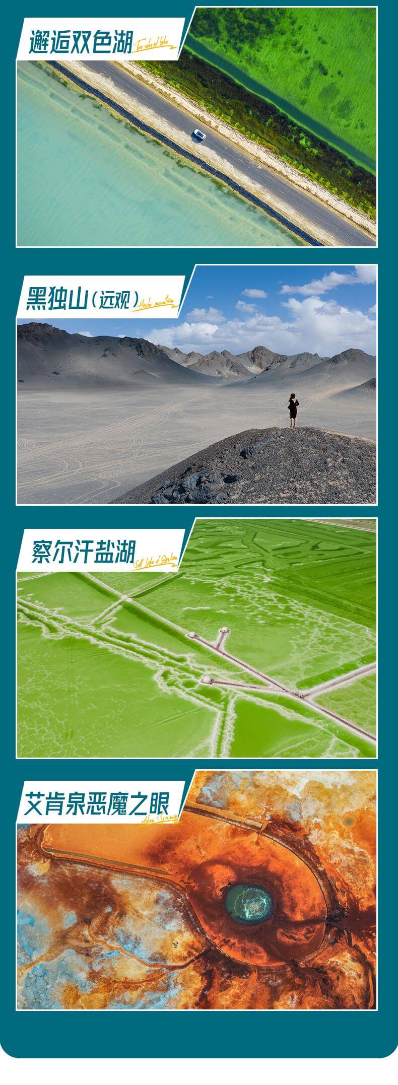 網(wǎng)紅打卡:網(wǎng)紅察爾汗鹽湖,東臺吉乃爾湖,水上雅丹,雙色湖,尕斯庫勒湖,惡魔之眼,茫崖翡翠湖,遠觀人間月球黑獨山,遺落孤城!一次出行盡享西北,不留遺憾!
