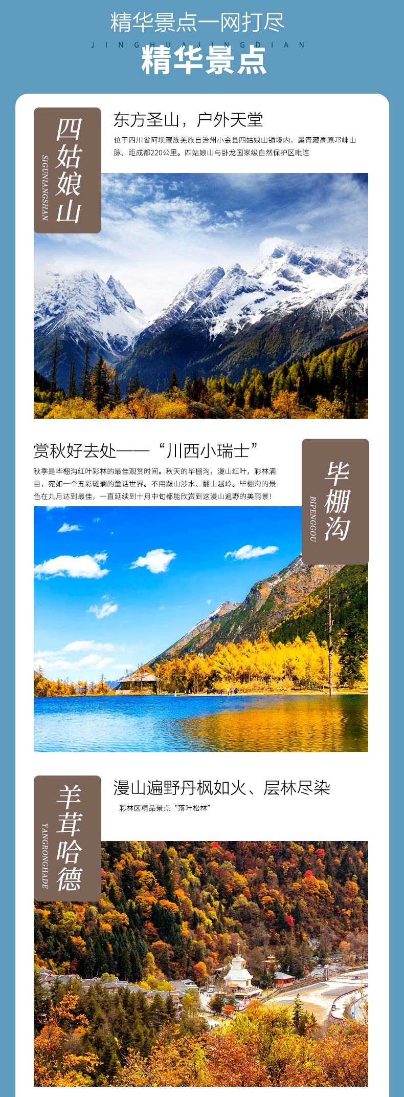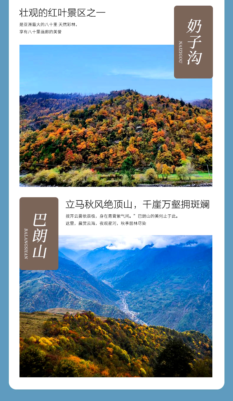 10、【環線賞秋】畢棚溝?達古冰川?四姑娘山?網紅景點:華美達無邊溫泉?奶子溝彩林季+探秘嘉絨藏族羊茸哈德?紅葉風景區米亞羅,環線設計,賞川西最美秋季彩林節。