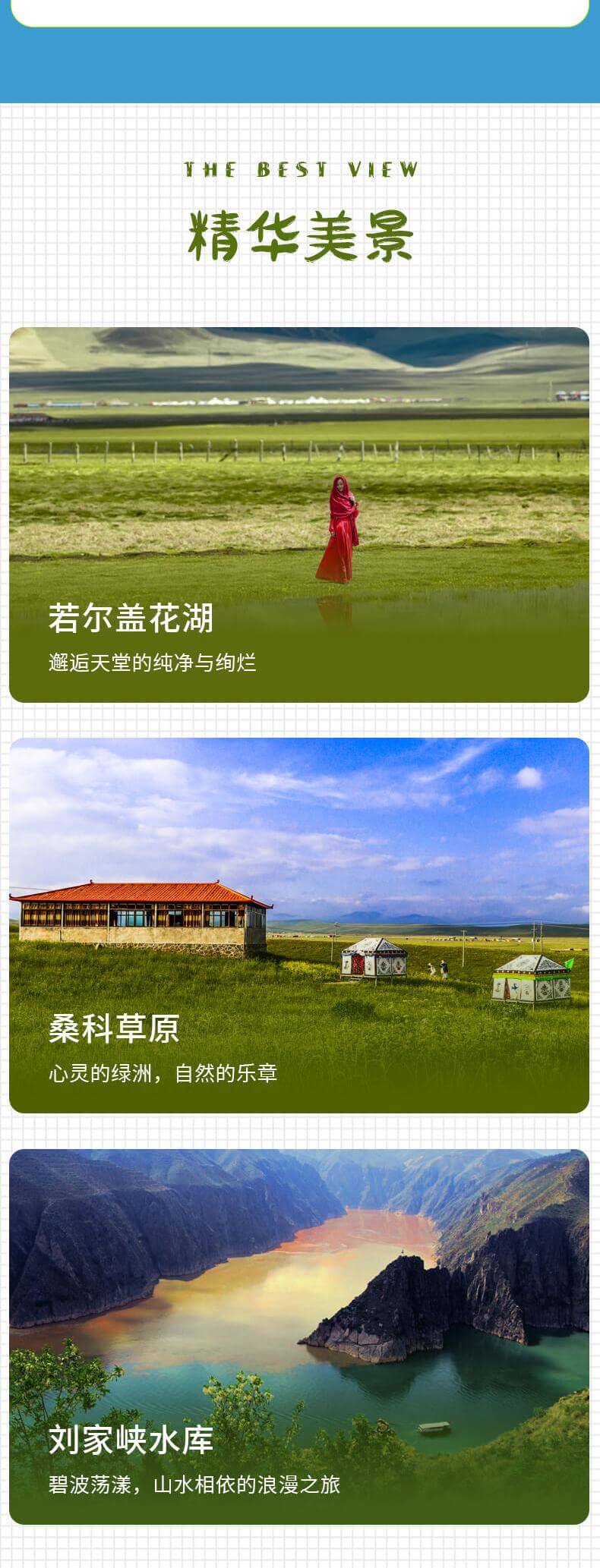 4、門票:甘加秘境門票+環保車、拉卜楞寺門票、格爾底寺門票、扎尕那門票、花湖門票+景交車、米拉日巴佛閣門票、劉家峽水庫門票