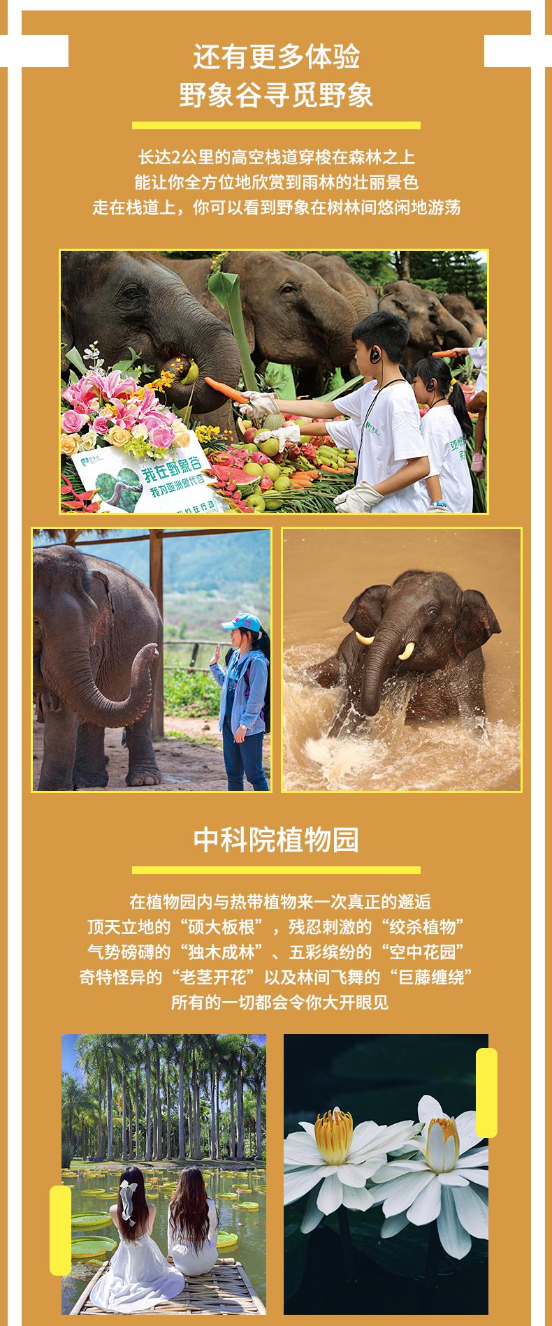 4、門票:野象谷景區(qū)(不含索道)、孔明燈、中科院植物園(含電瓶車);