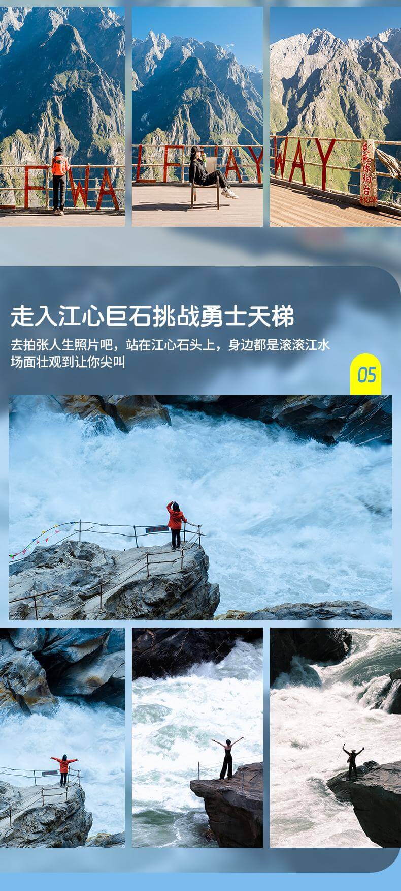 6、如因天氣原因等不可抗力因素導致虎跳峽封閉,無法進入,則啟動備案,前往香格里拉入住,次日游覽納帕海+松贊林寺后返回麗江解散,無費用增減,敬請諒解;