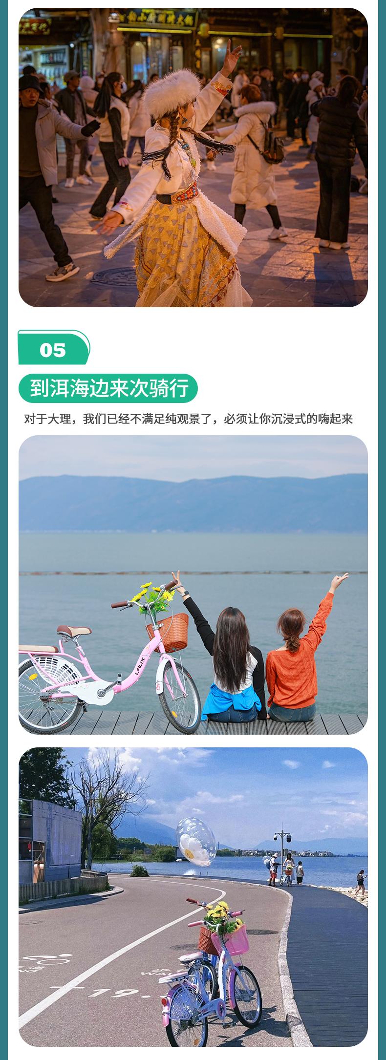 1、洱海騎行路程不長,中間可隨時停靠,相對體力消耗不大,輕松舒適,不會騎車的小伙伴可以坐電瓶車看路邊的洱海風景。