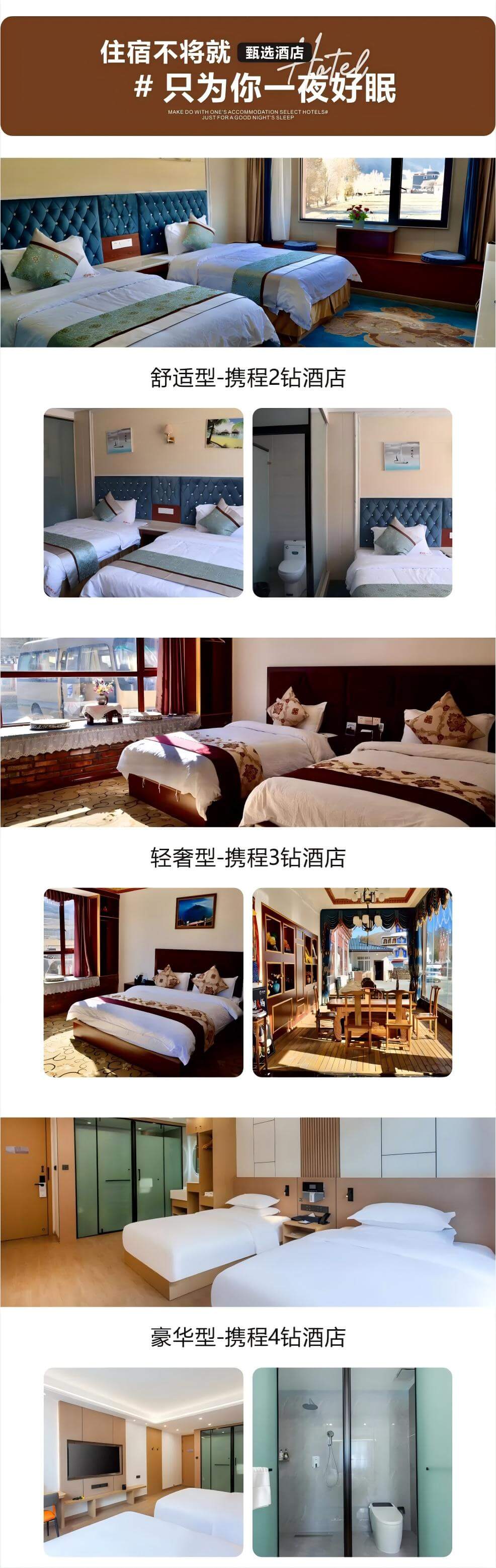 4.【關于大床】藏區酒店大床房稀缺,有大床需求的客人我司盡量滿足,若酒店無大床則默認安排雙床房。
