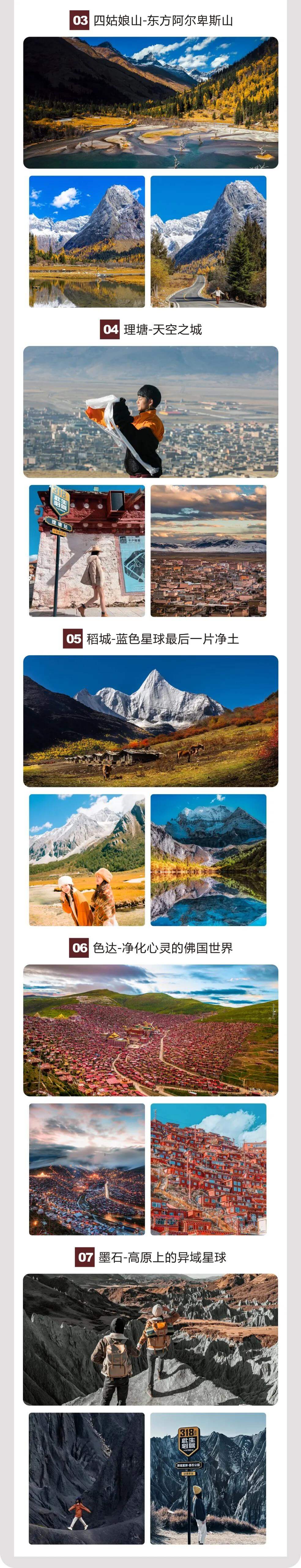 6、行程默認安排游玩魚子西,如遇魚子西臨時關閉或者全車游客統一要求更換則改為前往格底拉姆,費用自理(參考價格:清潔費20左右/人+中轉車60/人);如魚子西無法前往,替換為八郎生都村、扎真、新都橋觀景臺等同類型觀景點,如產生相關景點中轉車、清潔費等費用,需自理。