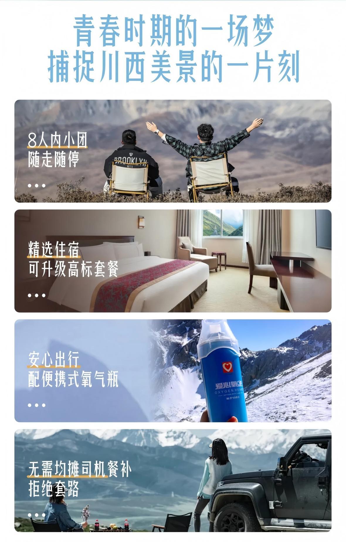 5、本線路行程海拔高度較高,落差大,部分客人可能會有身體不適情況,為此我們行程中為每個游客贈送了一瓶氧氣,以供游客使用,如果擔心自己身體高原反應(yīng),可以提前服用預(yù)防高原反應(yīng)藥物,行程中身體如有不適請及時與師傅溝通;