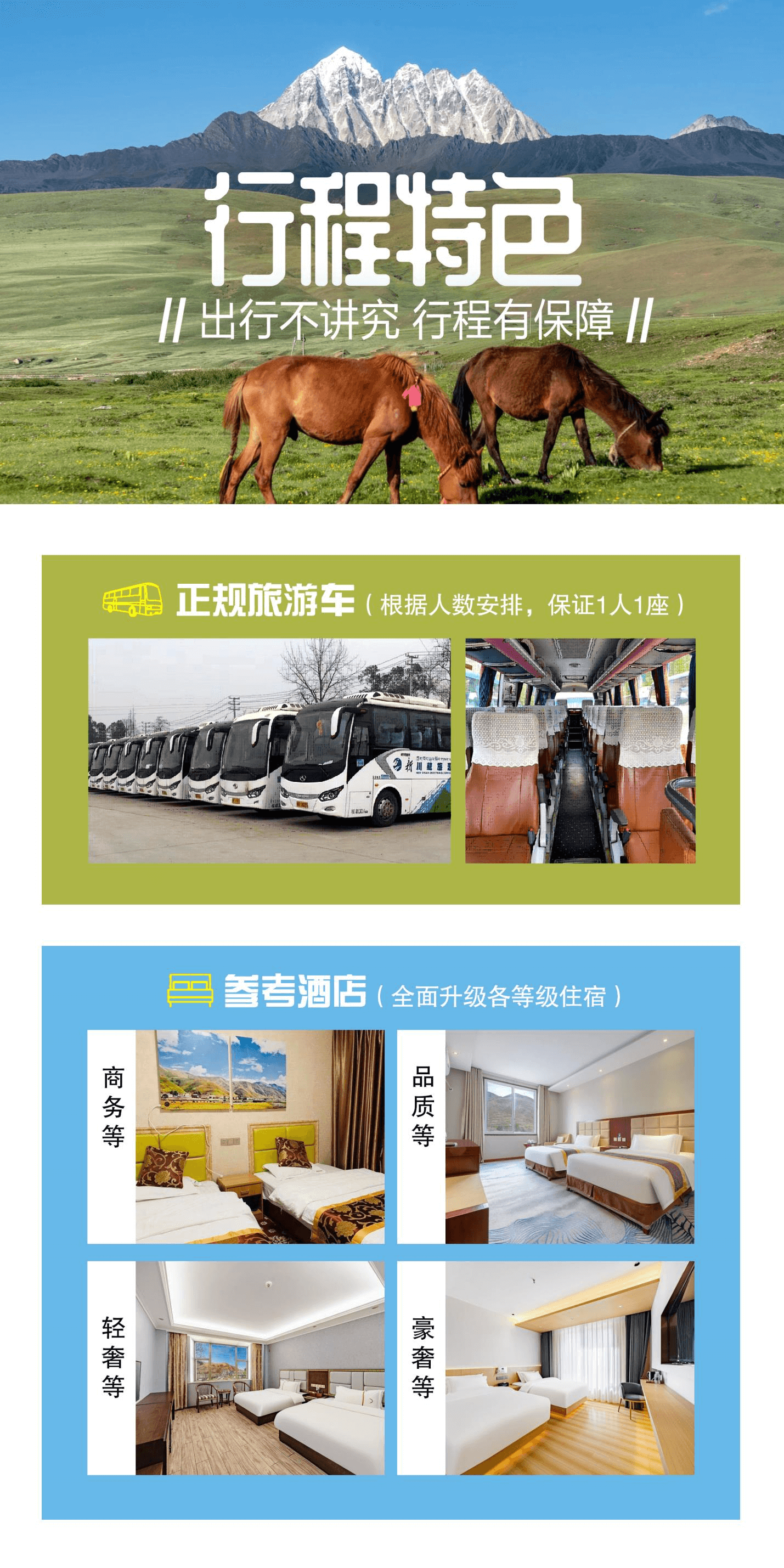 1、高原天氣變化大,山路比較多,路況不確定(政府交通管制,下雨,下大雪容易堵車),工作人員有權根據當天路況及天氣調整景區游覽順序。?