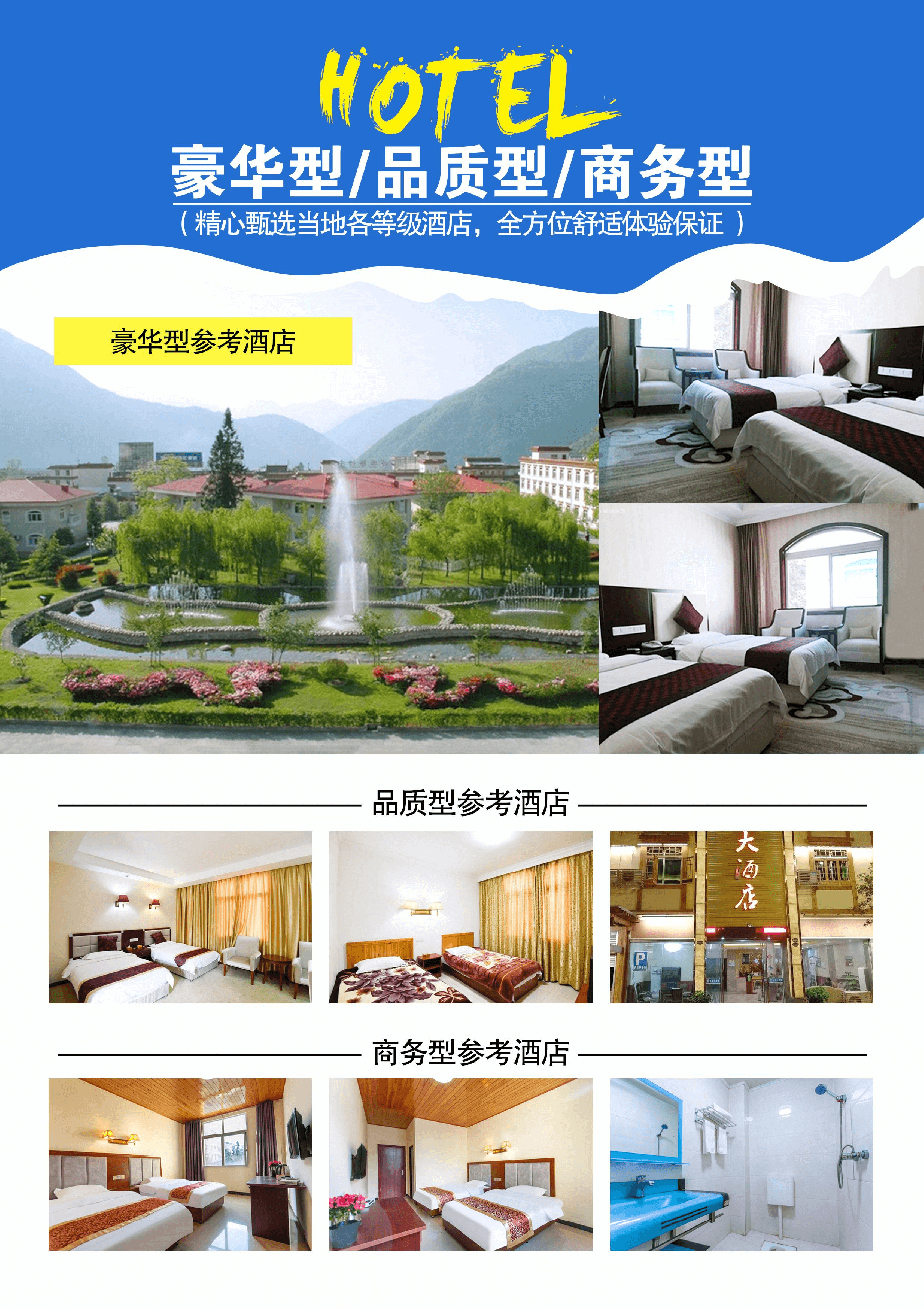 品質(zhì)型酒店:海磨觀景酒店、隆八步、樂天大酒店、尊享觀景酒店、鑫輝鴻鵠、TOWO 上品酒店等;