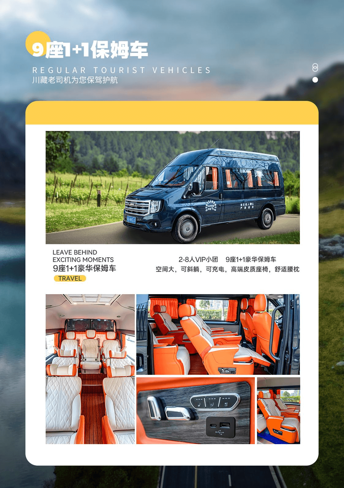 1:精選 9 座正規(guī)旅游保姆車,川藏老司機為您保駕護航,0 自費 0 購物