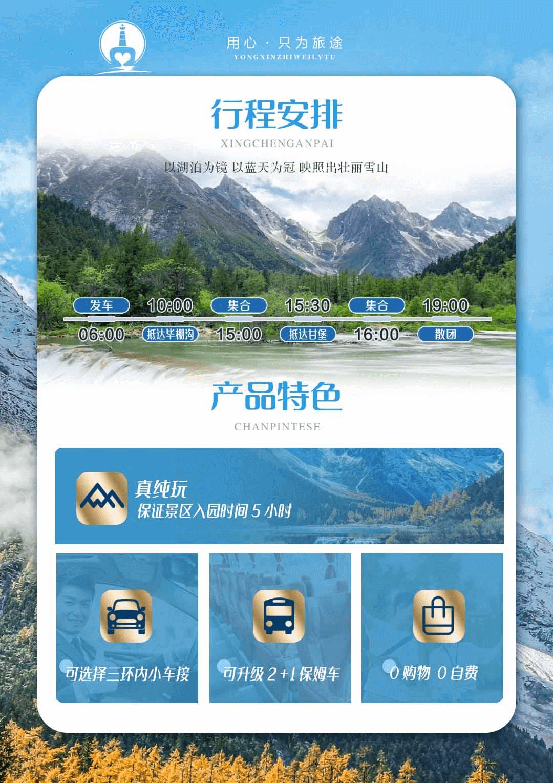 3、此日進入藏羌民族集聚地區,請尊重藏羌民族的民風民俗。自由活動期間無導游陪同,請注意自身財產和人身安全。游玩運動項目時,須遵守娛樂設施的操作規程,以免發生意外。