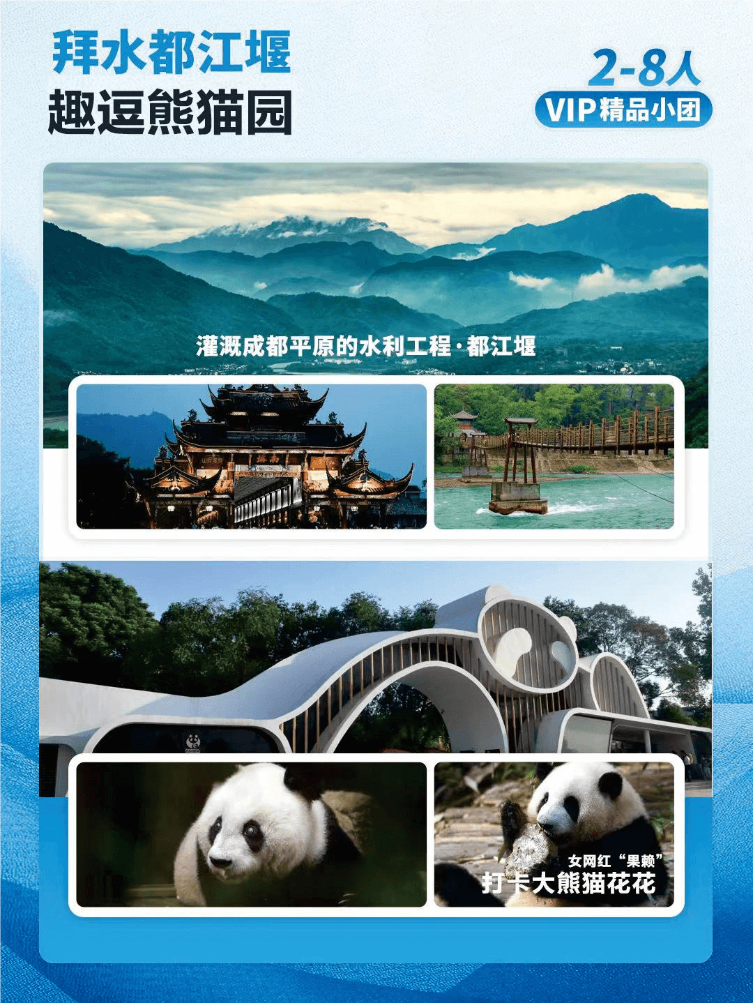 1.特安排都江堰景區(qū)導游深度講解,熊貓基地自由活動;