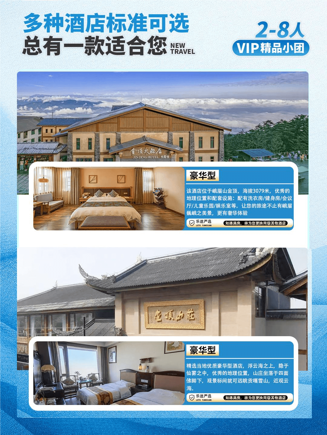 住宿:住宿一晚 ,每人按一個床位計算,峨眉山金頂酒店參考:金頂大酒店/金頂山莊或同級(不指定酒店)