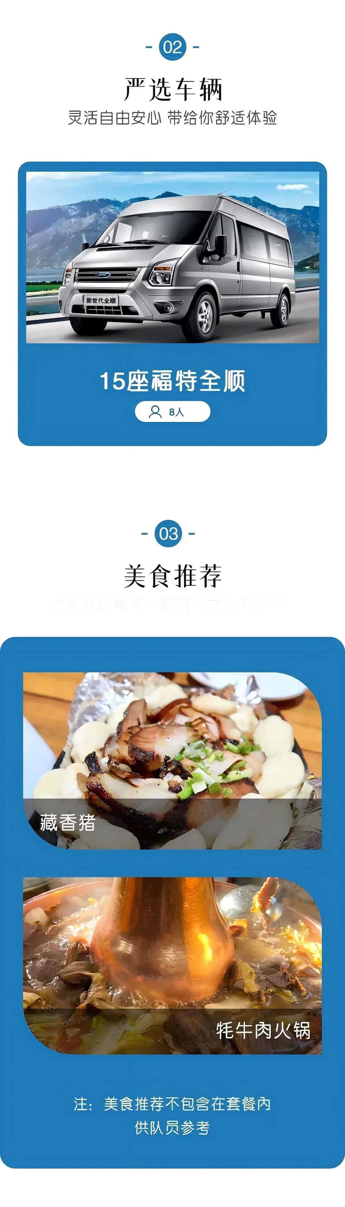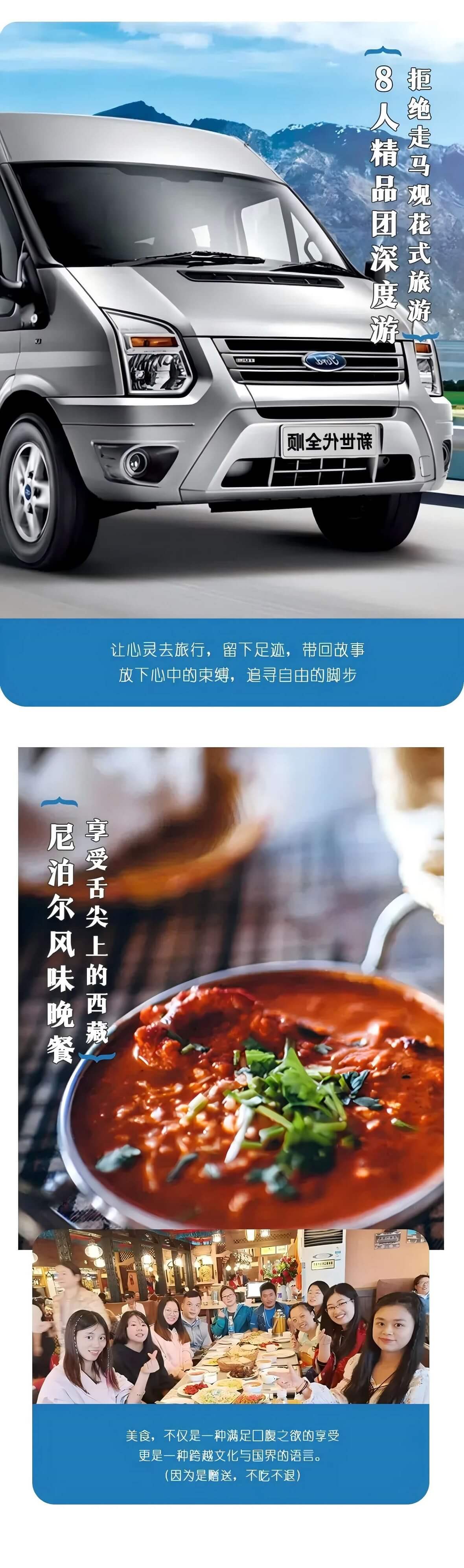 1、【交通】全程正規旅游牌照用車的包車費用,同時包含每個座位的保險,全程油費,珠峰進山費,司機食宿補貼等。15座福特全順