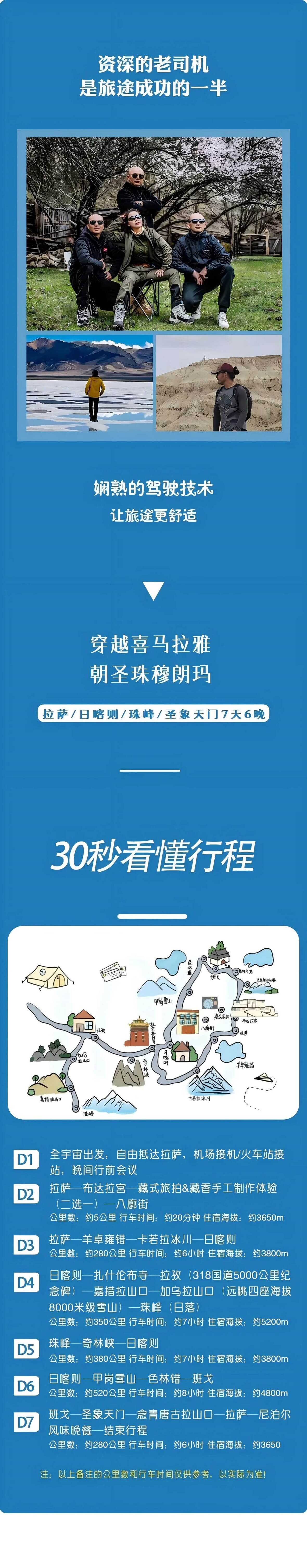 2、【獨家配備高原大禮包】隨車配備醫用氧氣鋼瓶、醫用葡萄糖,幫助隊員適應高原氣候,身穿精美藏裝、接受哈達的祝福,埡口掛經幡,撒隆達。
