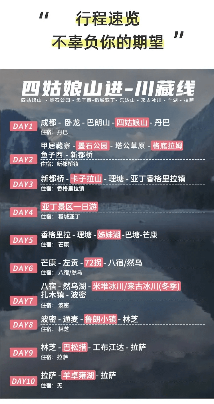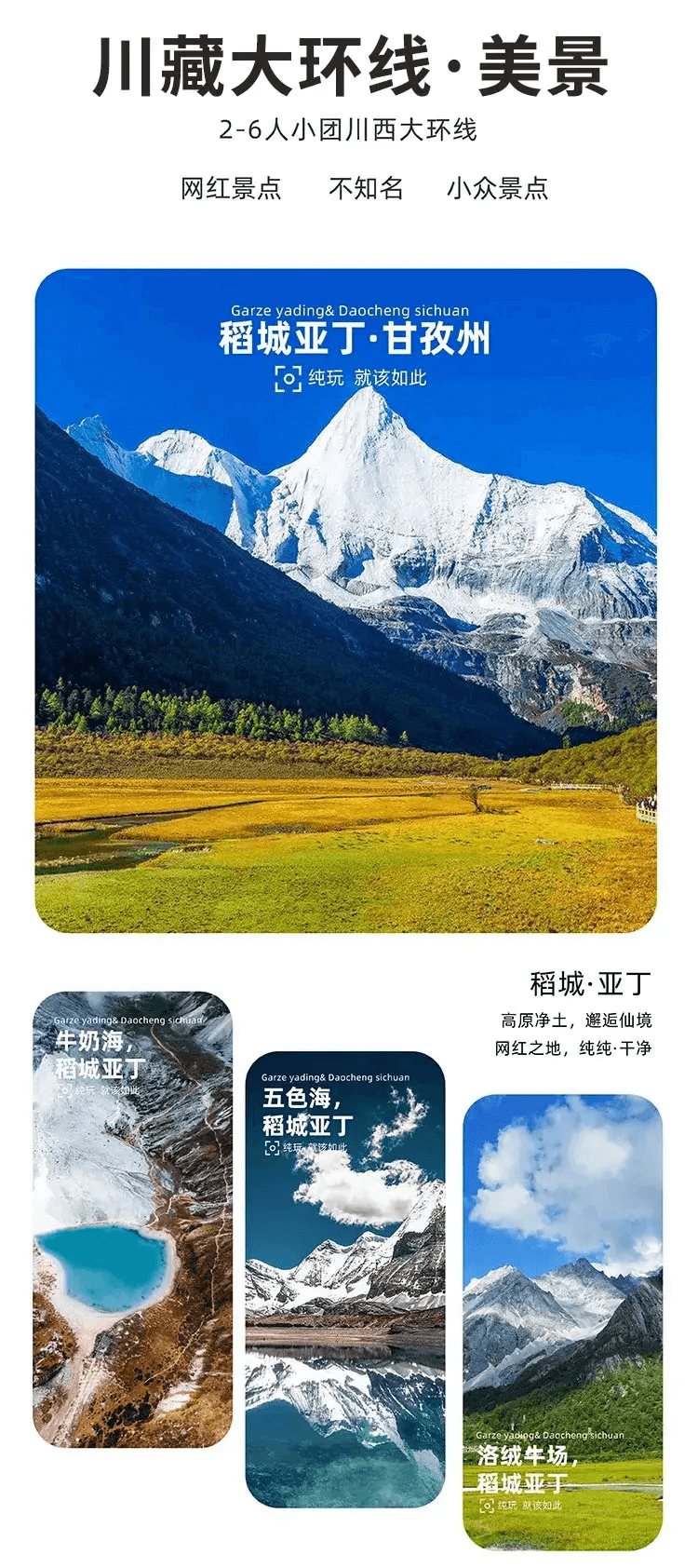 3、【精選景點】川藏大環(huán)線美景稻城亞丁、米堆冰川、拉薩等眾多景點;
