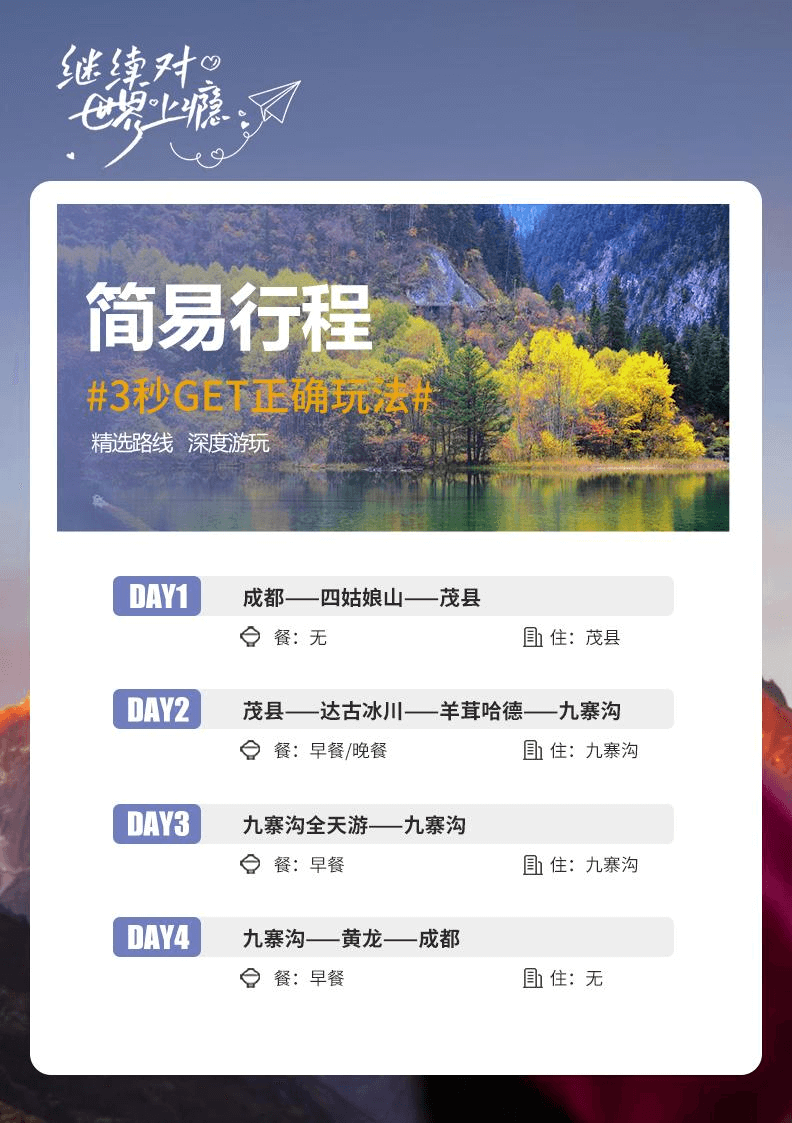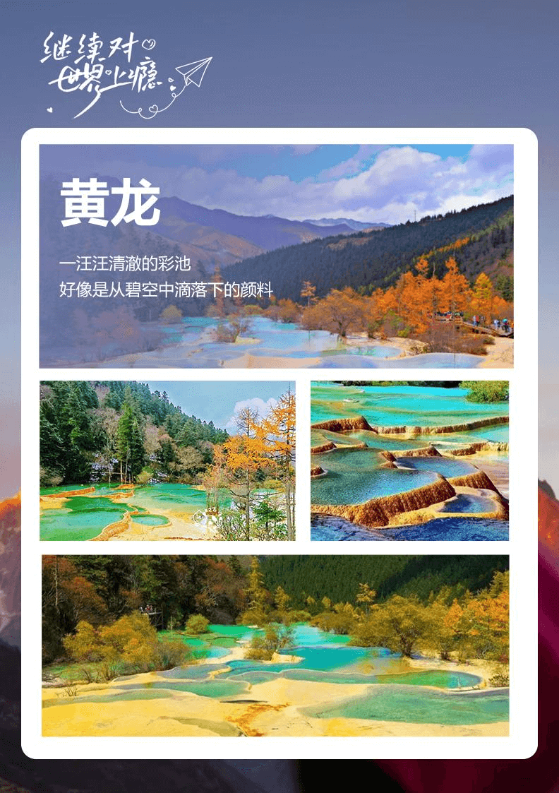 6:環(huán)線景點(diǎn):九寨溝、黃龍、達(dá)古冰川、四姑娘山