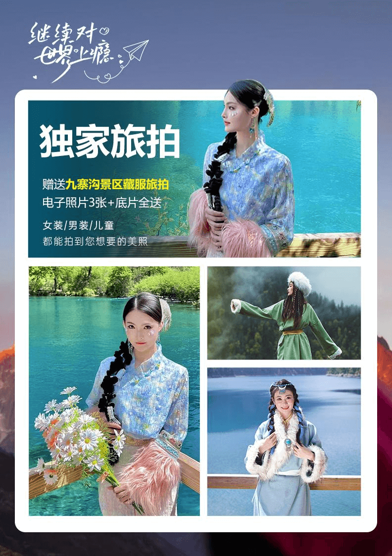 5:獨(dú)家旅拍:贈送九寨溝藏服旅拍精修電子照片 3 張+底片全送