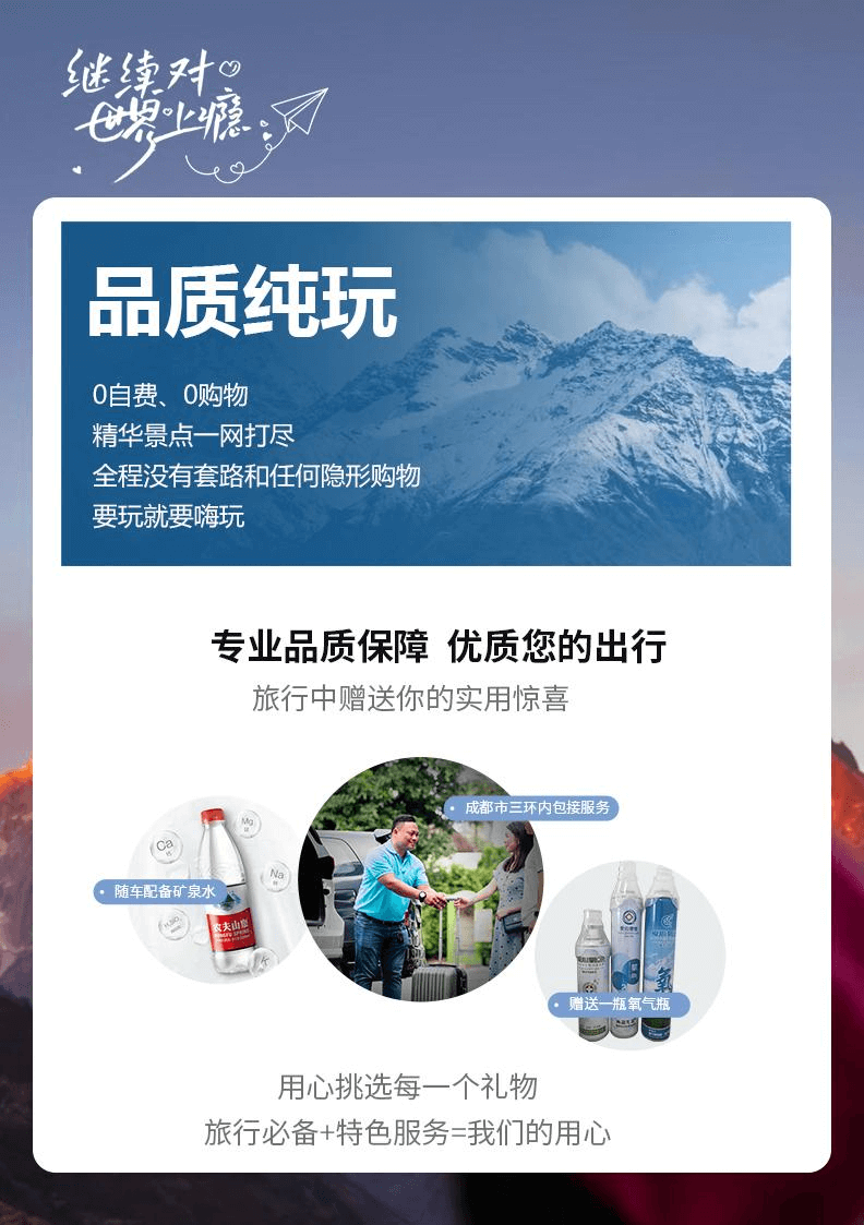 【品質(zhì)純玩】0 自費(fèi)、0 購物、真正純玩 ;【優(yōu)質(zhì)住宿】多種酒店任您選擇 ;【美食相伴】贈送當(dāng)?shù)靥厣朗匙哌M(jìn)藏家篝火晚會;【特別贈送】專業(yè)攝影師+網(wǎng)紅道具+攝影公開課