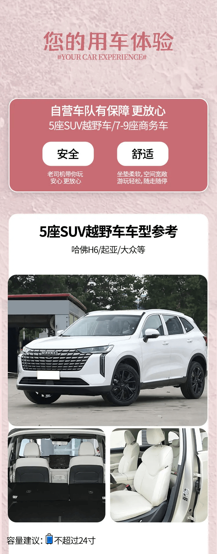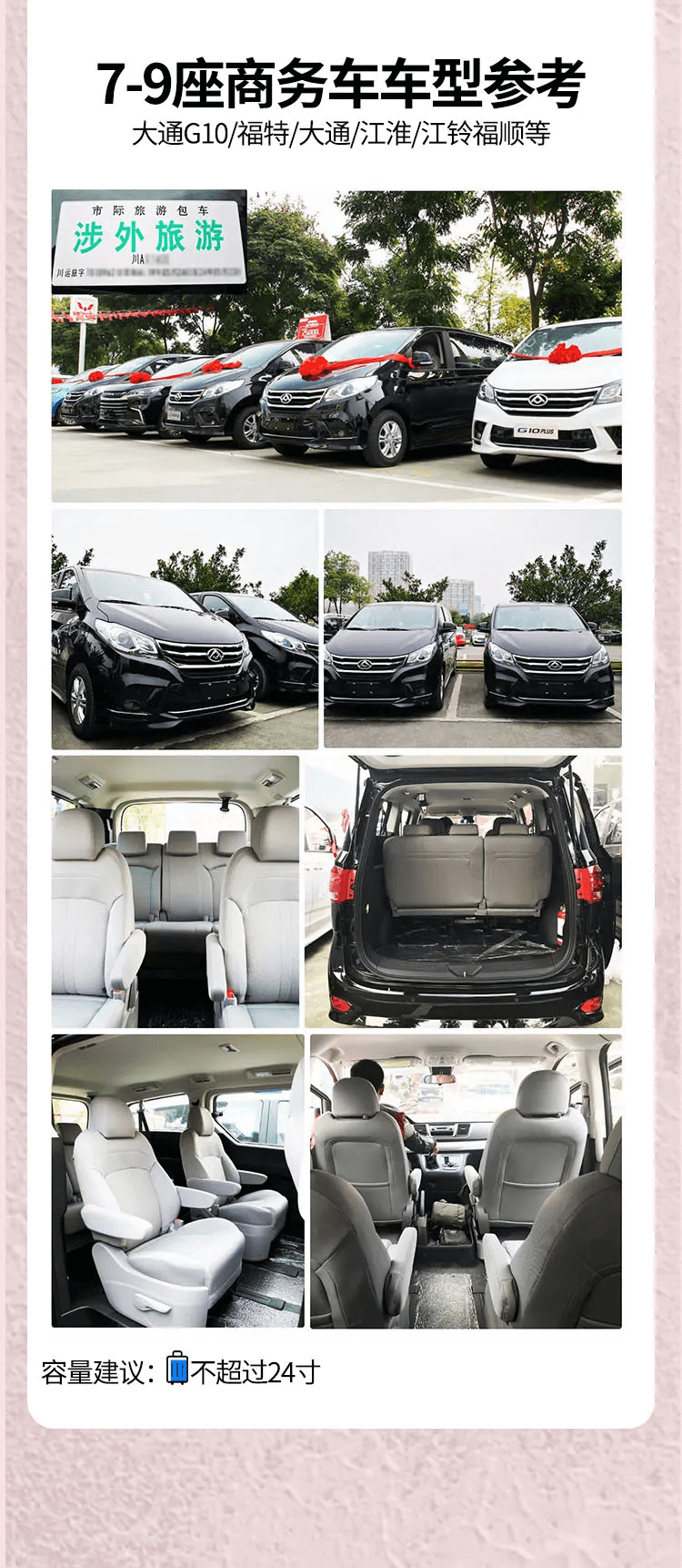 1、交通:行程內標明用車(5-7座SUV,7-9座商務車)根據最終報名人數選用相應大小的車型