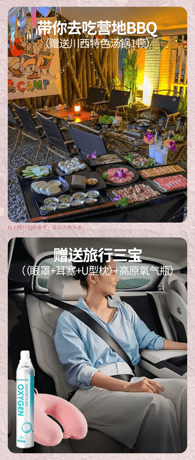 2、【貼心贈送】贈送新都橋營地BBQ、營地藏裝旅拍、旅游三寶;