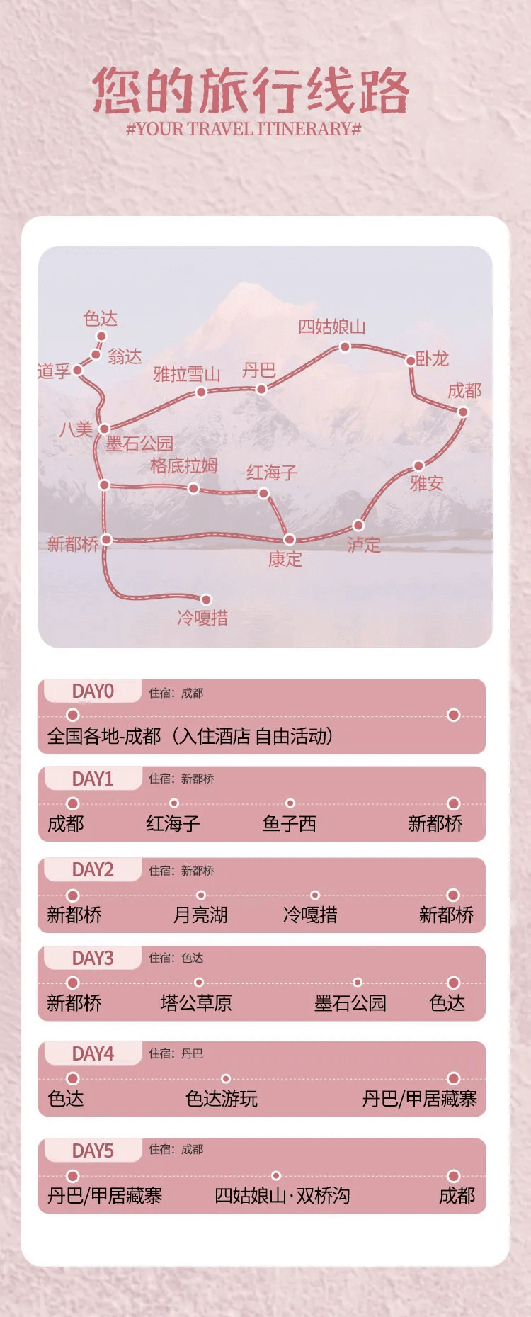 3、【精選景點】美景魚子西、月亮湖、冷噶措、墨石公園、色達、四姑娘山等眾多景點;