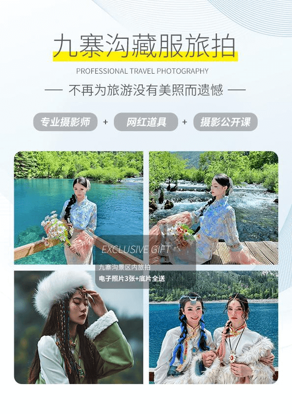 5:獨(dú)家旅拍:贈(zèng)送九寨溝旅拍精修電子照片 3 張+底片全送;