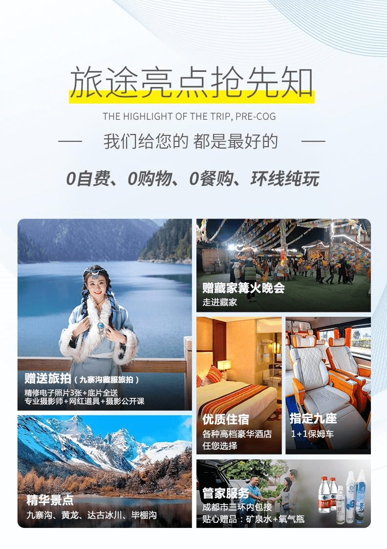【品質(zhì)純玩】0 自費(fèi)、0 購(gòu)物、真正純玩;【優(yōu)質(zhì)住宿】多種酒店任您選擇;【美食相伴】贈(zèng)送走進(jìn)藏家+篝火晚會(huì);【特別贈(zèng)送】專(zhuān)業(yè)攝影師+網(wǎng)紅道具+攝影公開(kāi)課;